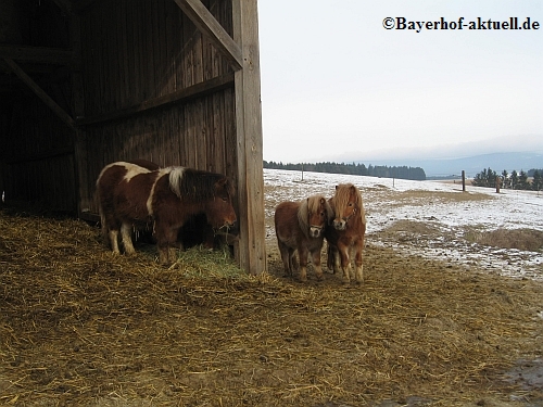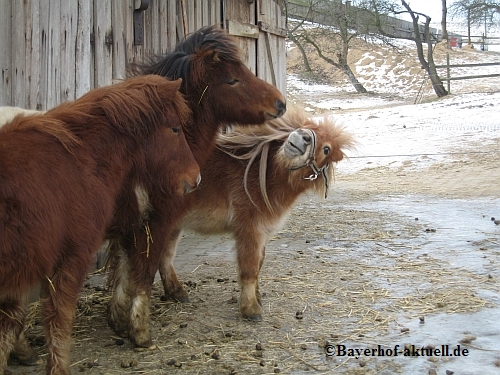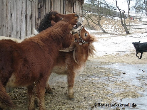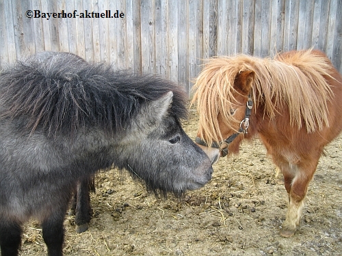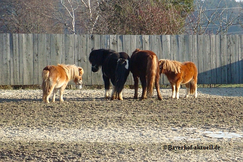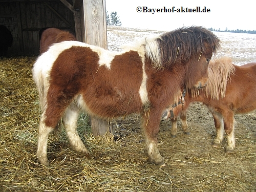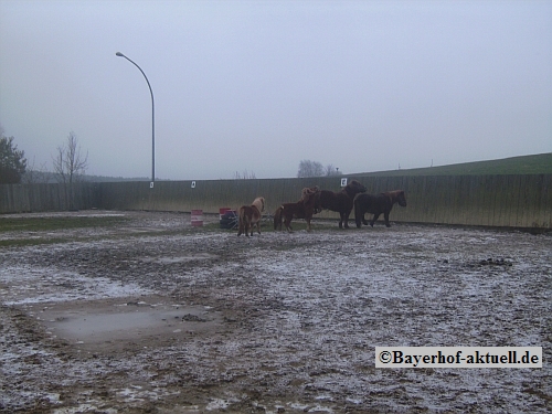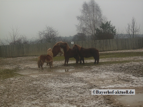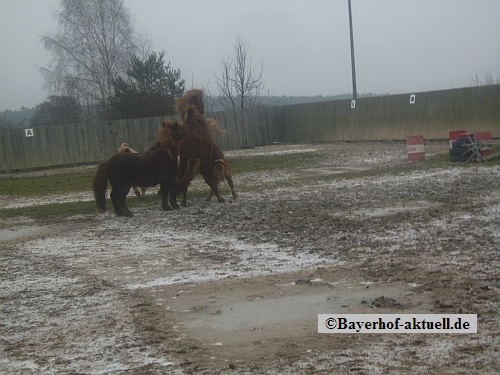 So wurden die beiden Knirpse im Dezember und Januar langsam mit all den anderen Shettys bekannt gemacht. Das heißt, sie kamen tagsüber immer wieder mit dem eine oder anderen Shetty im 2er-Pack ins Viereck.