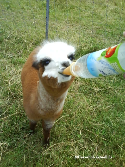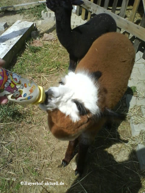 Vor allem, nachdem wir den richtigen Nuckel gefunden hatten...die altbewährten Babynuckel passen halt auch in so kleine Schnuten, wie die eines  Alpaka-Babys.