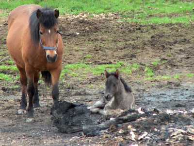 Wir haben heute ein Hengstfohlen von Katla bekommen. Es ist ein Rappe leider ohne Abzeichen. Aber, wie ich finde,mit langen Beinen.